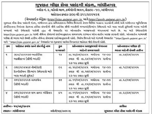GSSSB Recruitment 2025 | ગુજરાત ગૌણ સેવા પસંદગી મંડળ ભરતી